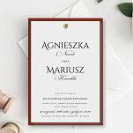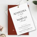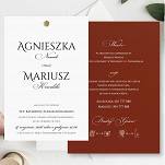 Nowoczesne zaproszenia w modnym kolorze BORDO połączone z BIELĄ. Papier w kolorze ciemnego wina to barwiony w masie, gładzony papier ozdobny. Wyjątkowy druk w kolorze białym sprawia, że zaproszenia są bardzo eleganckie i unikatowe.