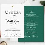 Nowoczesne zaproszenia w kolorze CIEMNEJ ZIELENI i BIELI. Wyjątkowy papier w kolorze ciemnej zieleni to barwiony w masie, gładzony papier ozdobny. Wyjątkowy druk w kolorze białym sprawia, że zaproszenia są bardzo eleganckie i unikatowe.