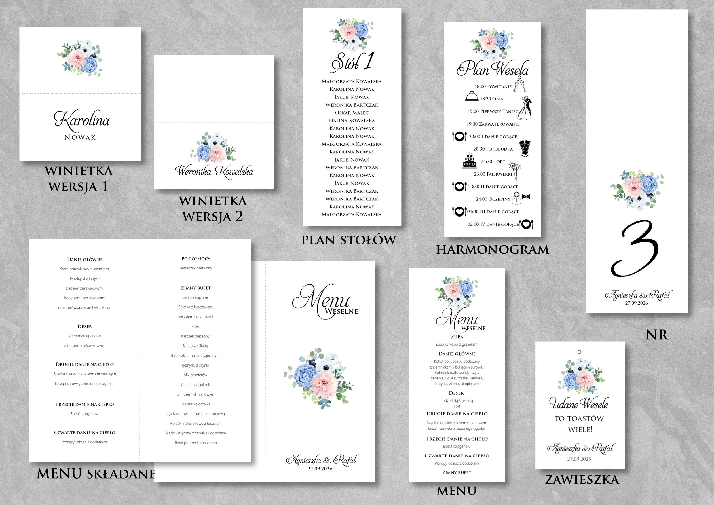 DODATKI DO ZAPROSZEŃ ( WINIETKI / ZAWIESZKI / NR STOŁÓW / PLAN STOŁÓW / PLAN WESELA / MENU ) do każdego zaproszenia możemy wykonać pozostałe dodatki, w tym celu prosimy o kontakt jeżeli nie mamy w ofercie tego co Państwa interesuje.