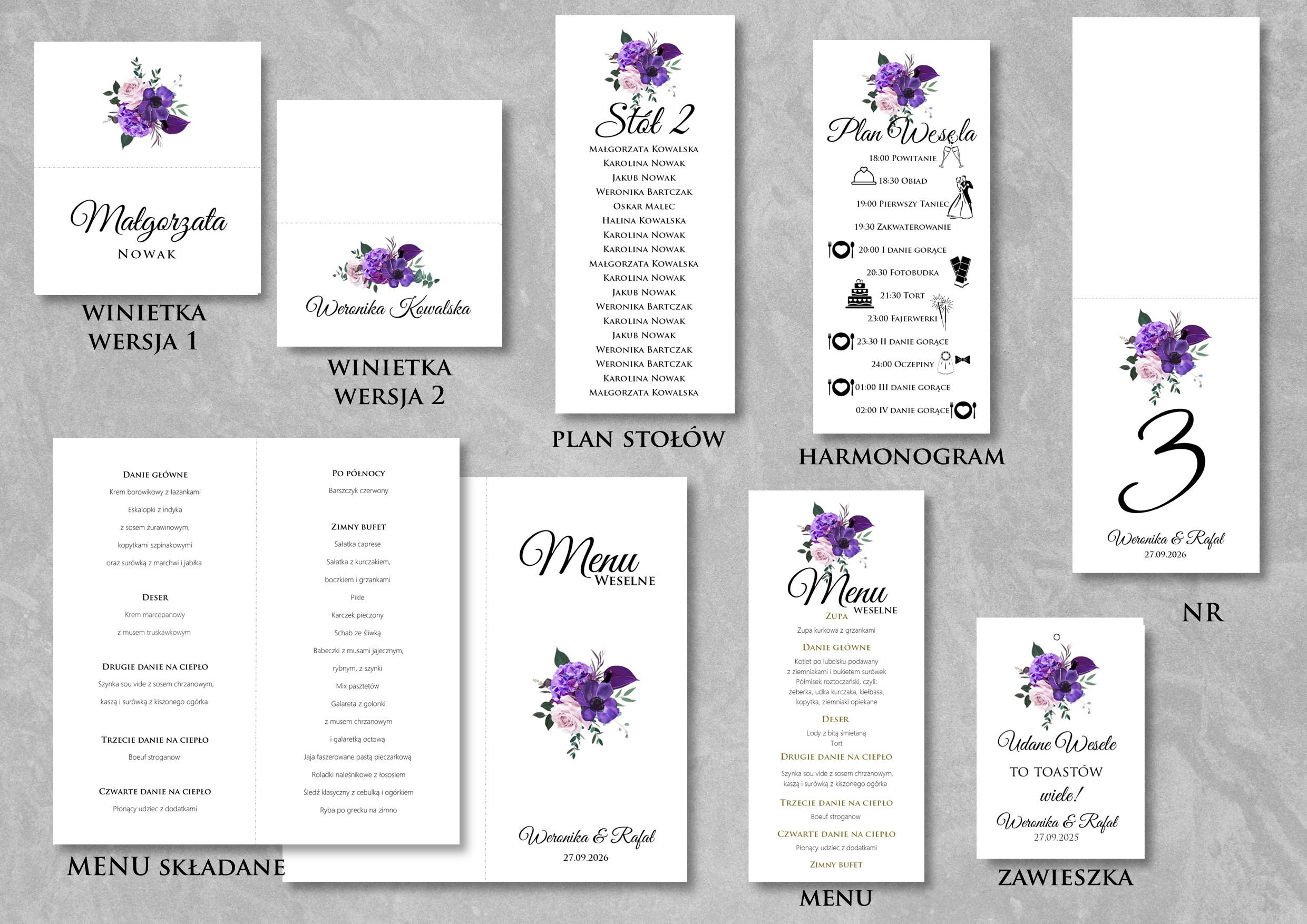DODATKI DO ZAPROSZEŃ ( WINIETKI / ZAWIESZKI / NR STOŁÓW / PLAN STOŁÓW / PLAN WESELA / MENU )
