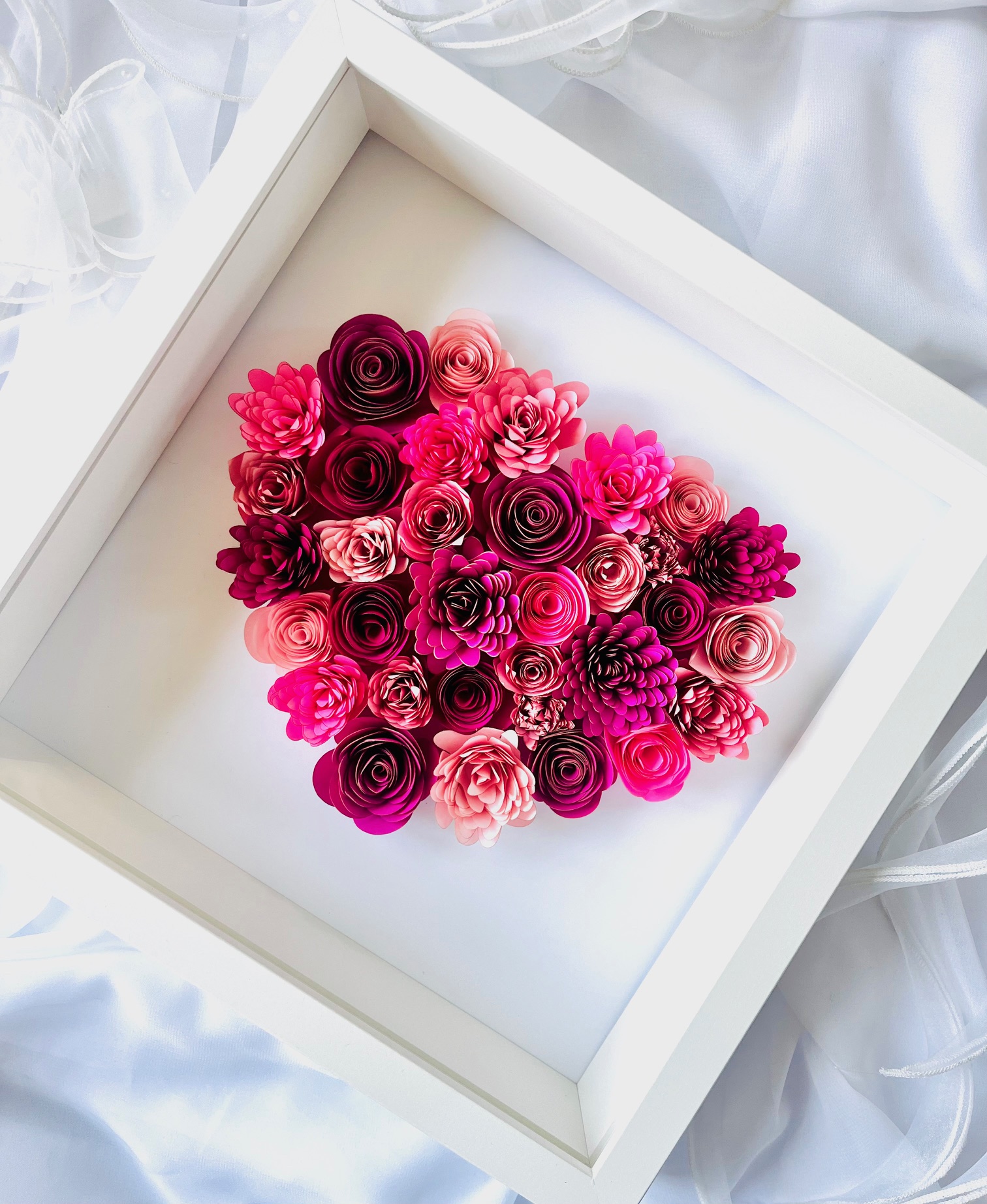 RAMKA 3D z ręcznie wykonanymi kwiatami w dowolnej kolorystyce. Napis do uzgodnienia np.