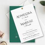 Nowoczesne zaproszenia w kolorze CIEMNEJ ZIELENI i BIELI. Wyjątkowy papier w kolorze ciemnej zieleni to barwiony w masie, gładzony papier ozdobny. Wyjątkowy druk w kolorze białym sprawia, że zaproszenia są bardzo eleganckie i unikatowe.