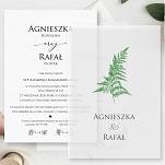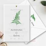 Zaproszenia ślubne z motywem liścia paproci idealnie wpisują się w styl rustykalny wesela. To jakże popularne połącznie motywu paproci z delikatną kalką i złotym nitem jest idealnym rozwiązaniem dla par które szukają zaproszeń minimalistycznych i rustykalnych jednocześnie.