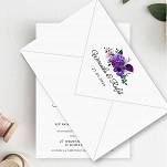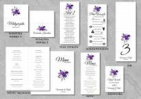 Zaproszenia z motywem kwiatowego bukietu w kolorze fioletu to odważna propozycja dla par chcący się wyróżnić. Dodatkowo delikatne wtrącenia z gałązek eukaliptusa sprawia, że zaproszenia są jednocześnie wyraziste i delikatne. Do wyboru dwa rodzaje papieru: biały gładki lub delikatnie tłoczony, barwiony w masie.