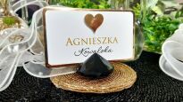 - Gotową winietkę jednostronna do położenia na stół z zaokrąglonymi narożnikami i złotym serduszkiem 3D + podstawka w kształcie diamentu, kolor do wyboru